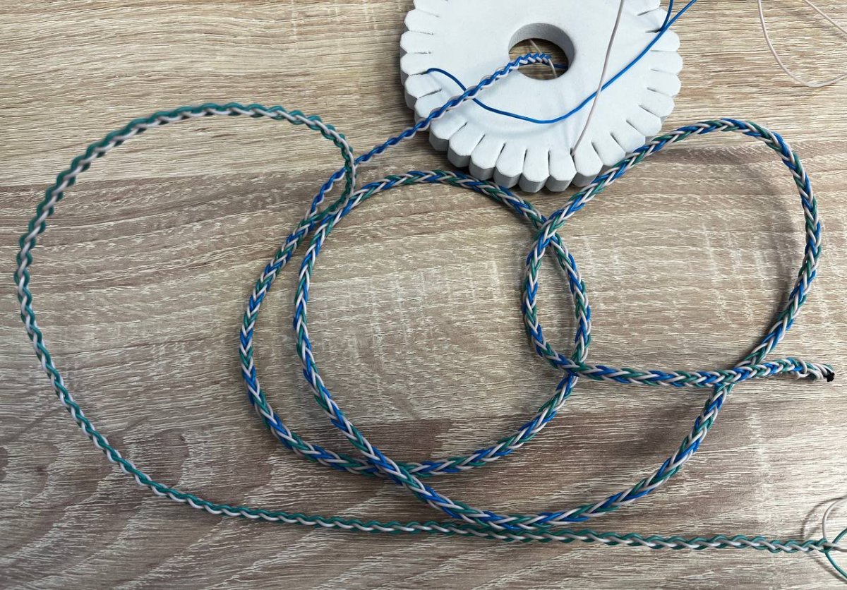 Сплёл проводочки, запаял разъёмы. Звук вышел отвратительный. Хотя и 2 соседних провода за жилу взял, но самый низ провальный вышел. Видимо, сам провод хреновастенький. Есть кабель с другого провода, просто свиты провода и то лучше звучит.