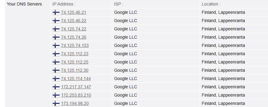В качестве примера, если мы прописываем гугловский защищённый DOT, то запросы улетают на Финку и от туда нам дают полноценный айпишник: