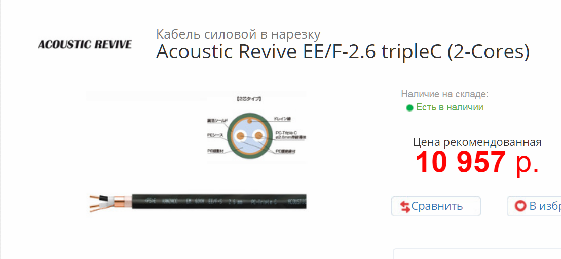 Ещё кабель с точно таким же названием выпускает Акустик Ревю из другой меди, этот вариант немного подороже около 11тыс.