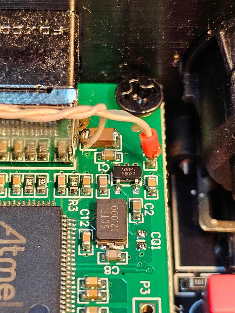 5. Начал исследовать  земли на плате  и экспериментировать с заземлением корпуса (синий проводник под винтом крепления платы см. фото).