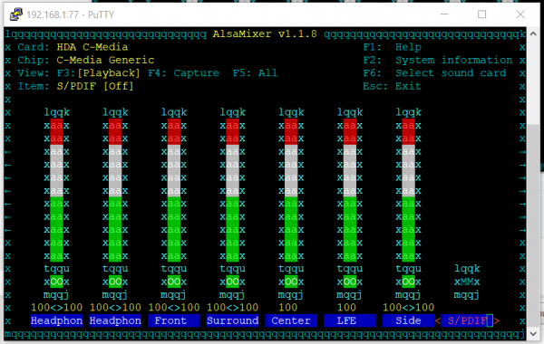 Как зайти в alsamixer с помощью Putty? И как там настраивать?
