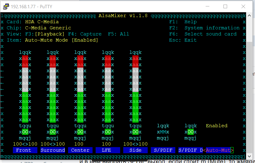 сохраненных командой alsactl store настроек микшера alsamixer.